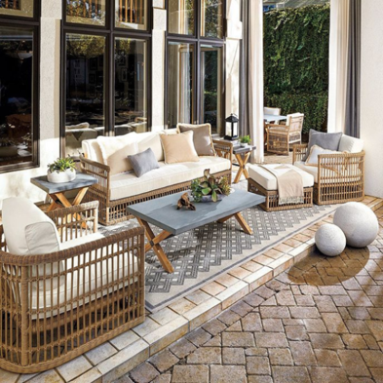 Ensemble de jardin design moderne en rotin et aluminium, origine Vietnam, pour usage extérieur, résistant à l'eau, garantie 3 ans