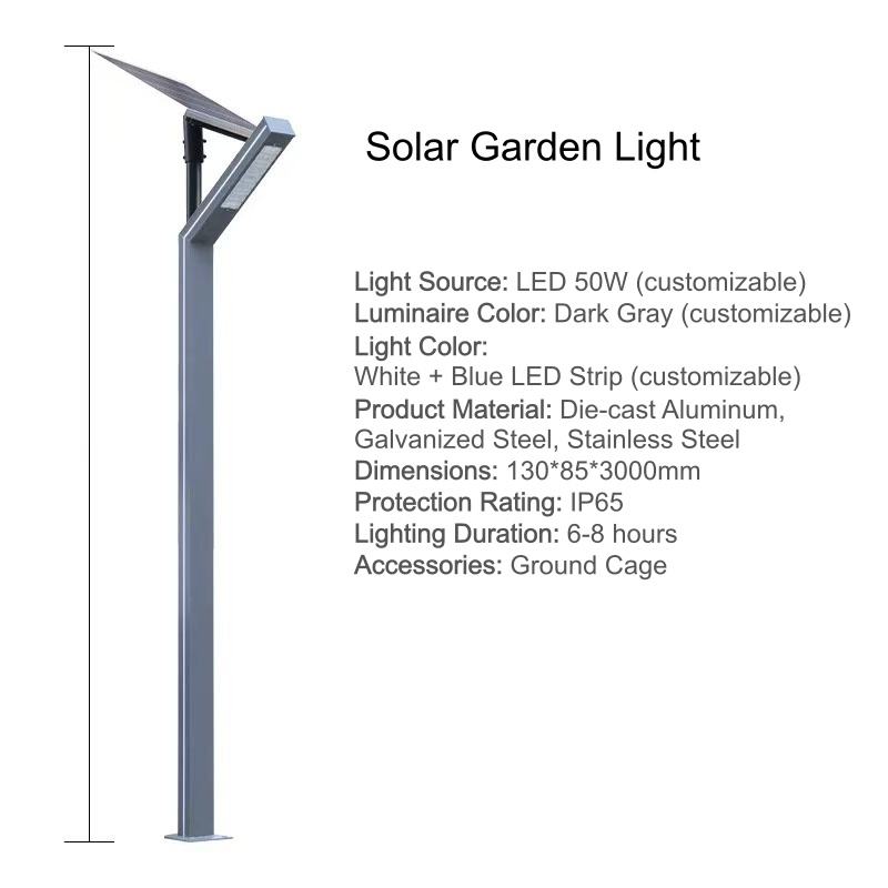 Lampe solaire de jardin 30w Ip65 Led Lumière extérieure moderne 3m 4m 5m Source de lumière Led Corps en aluminium Lumière de jardin pour cour