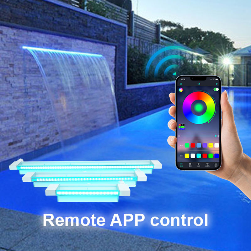 Cascade de piscine de jardin, lame d'eau murale, déversoir, cascade en acrylique LED pour piscine