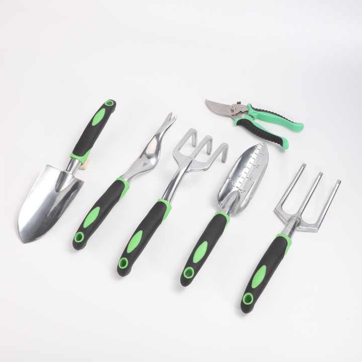 Ensemble d'outils de jardinage comprenant des pelles, des râteaux, des houes et des sécateurs. Une variété d'outils de jardinage, des ciseaux d'élagage en alliage d'aluminium.