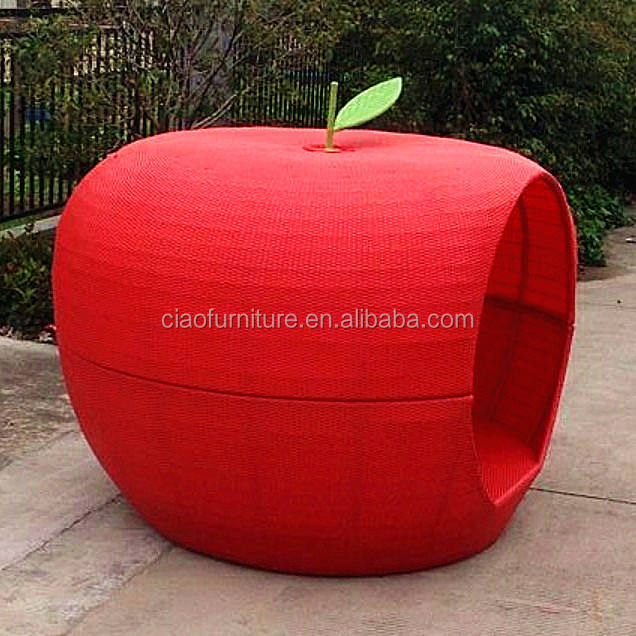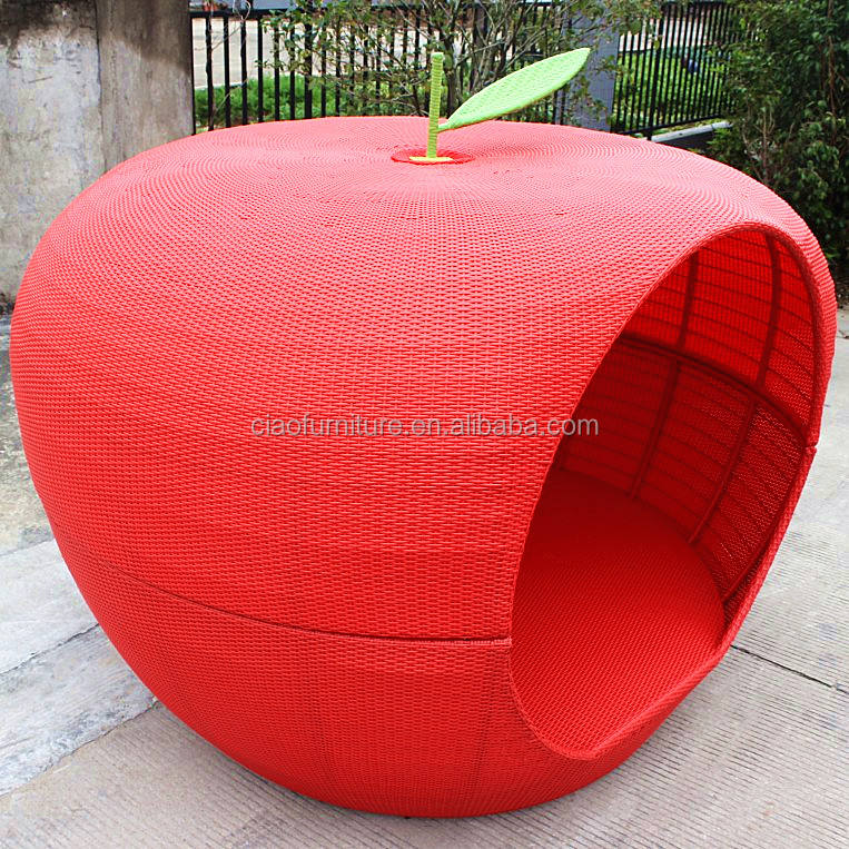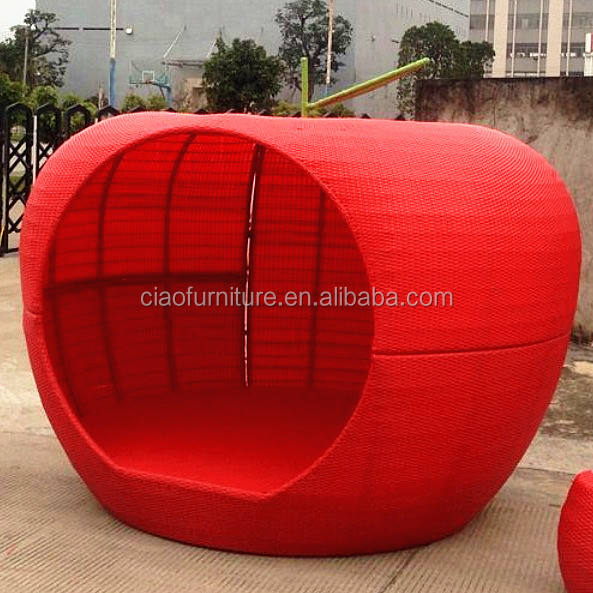 Lit de soleil rouge en osier pour jardin Style tropical Resort Hôtel Loisirs Rotin Bain de soleil Lit pomme Mobilier d'extérieur Cocoon Lounger