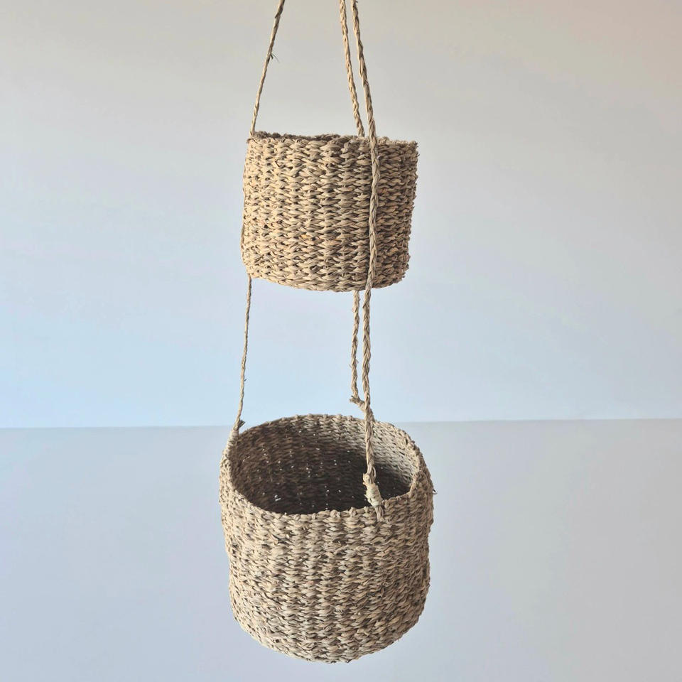 Garden accessories handmade seagrass plant pots straw hanging planter natural sea grass pot