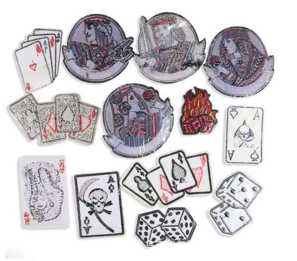 Accessoire pour vêtements Rouleau de cartes à jouer Forme de dés Vêtements Logo Autocollants décoratifs Fer à repasser sur patch brodé pour vêtements