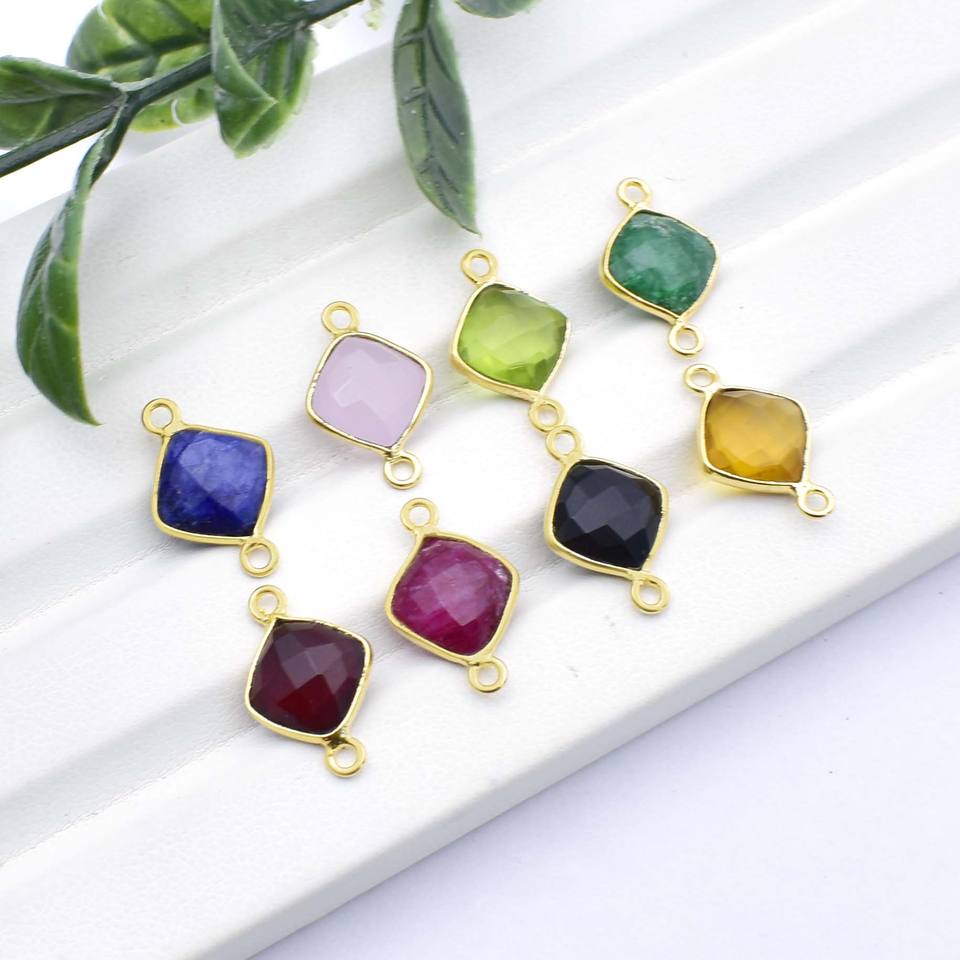 Connecteur en pierre précieuse grenat, plaqué or, double bélière pour collier ou bracelet, cadeau fait main pour elle