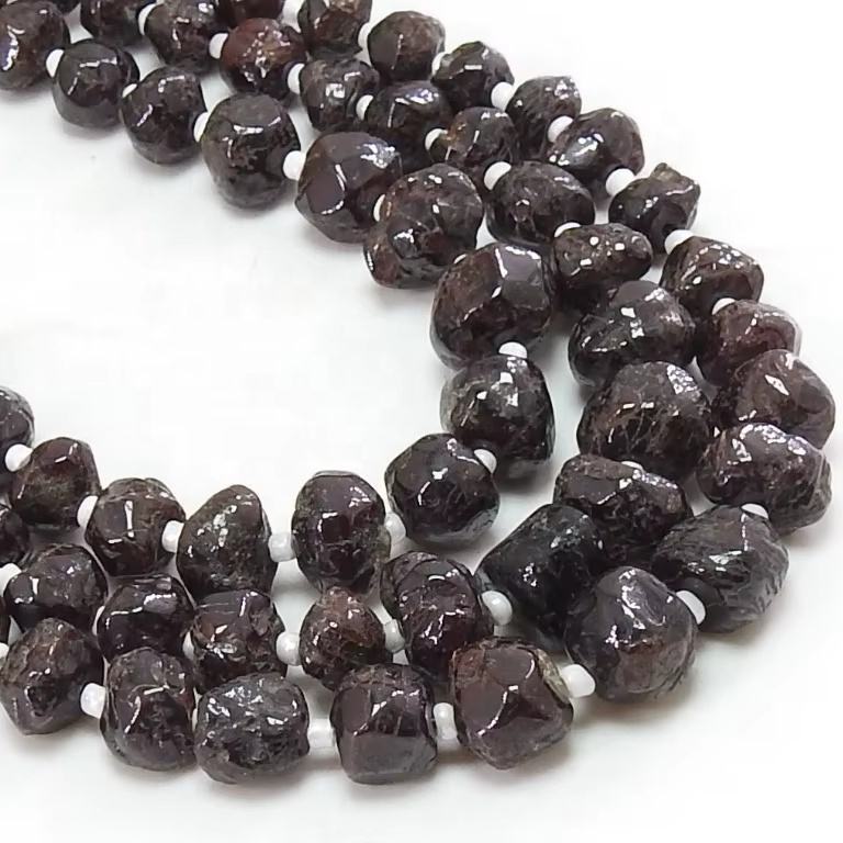 Perles rondes brutes en grenat rose naturel polies, brin de 8 pouces, 10-15 mm, pour la fabrication de bijoux, fournitures en gros