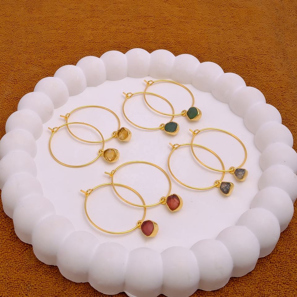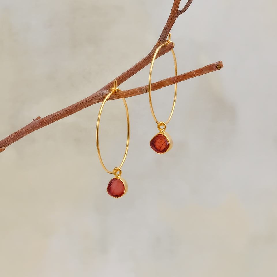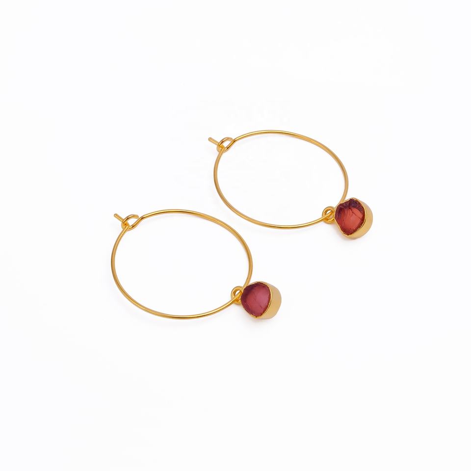 Boucles d'oreilles créoles en grenat brut, pierre de naissance de janvier, plaqué or rose, mignonnes, faites à la main, légères, bijoux de mode, cadeau