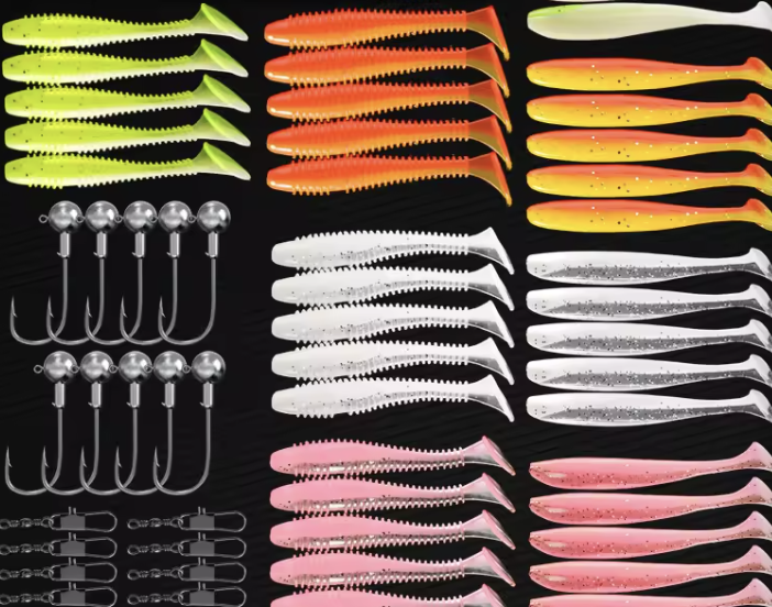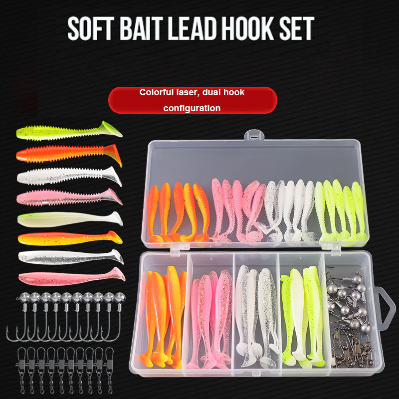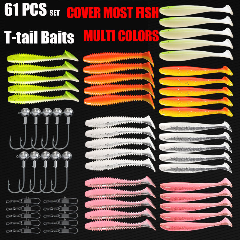 Ensemble de leurres de pêche en silicone souple à lente descente Garroted de 61 pièces, avec hameçons de tête de jig