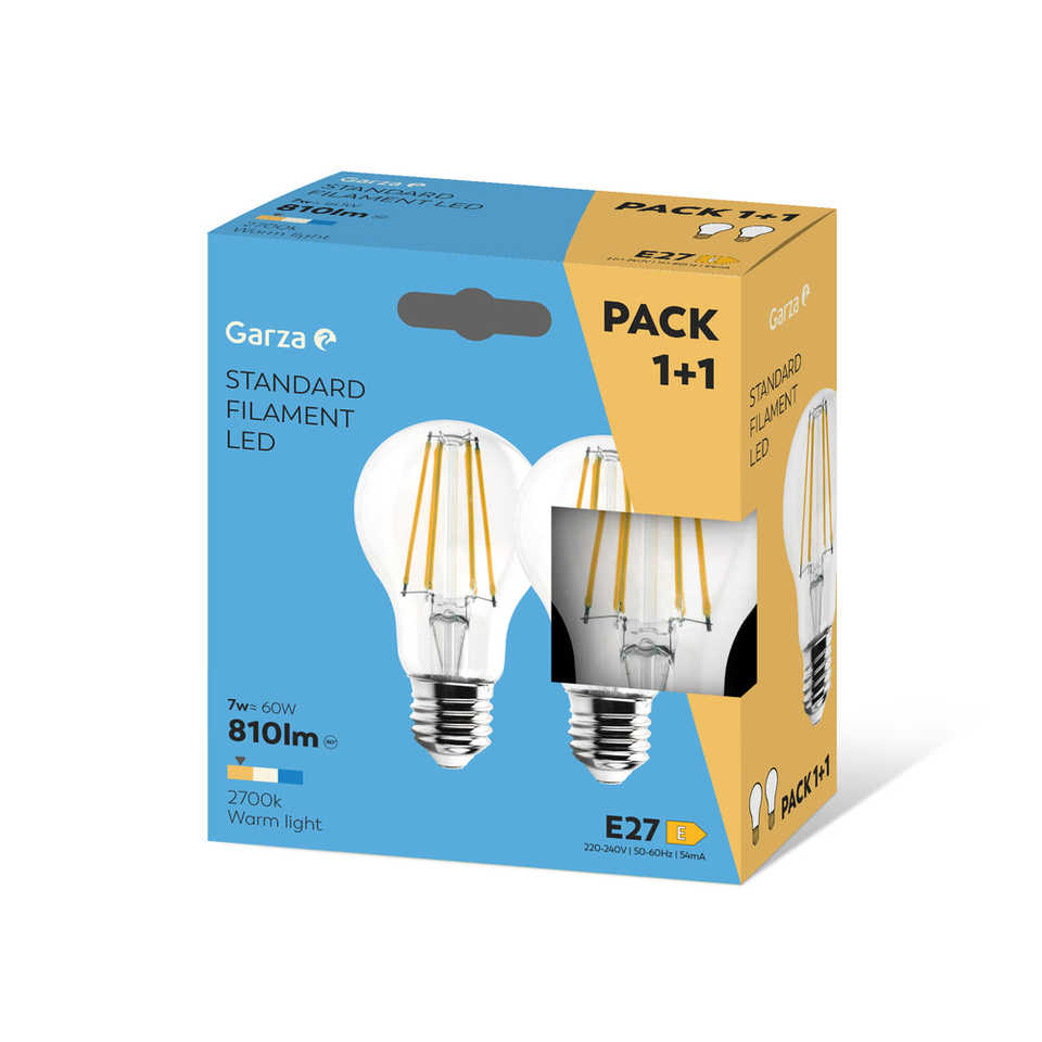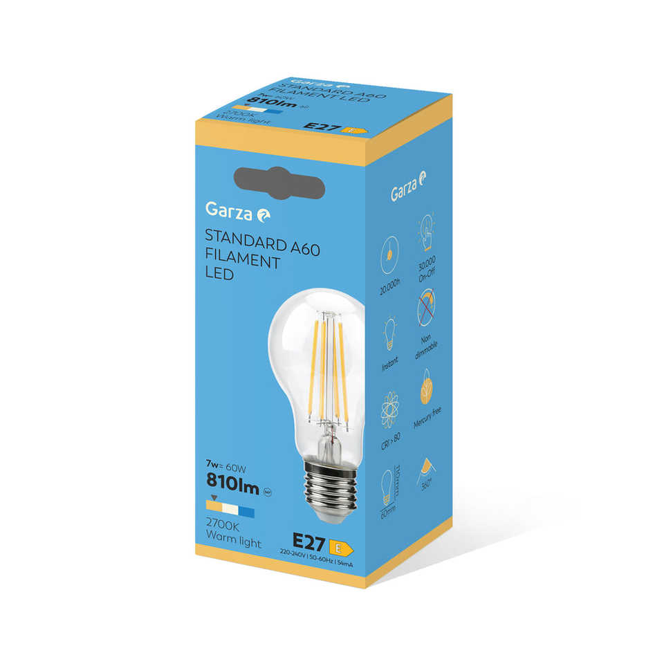 Ampoule LED à filament transparent Garza A60 E27 7W 2700K, remplacement standard des ampoules à incandescence, haute qualité