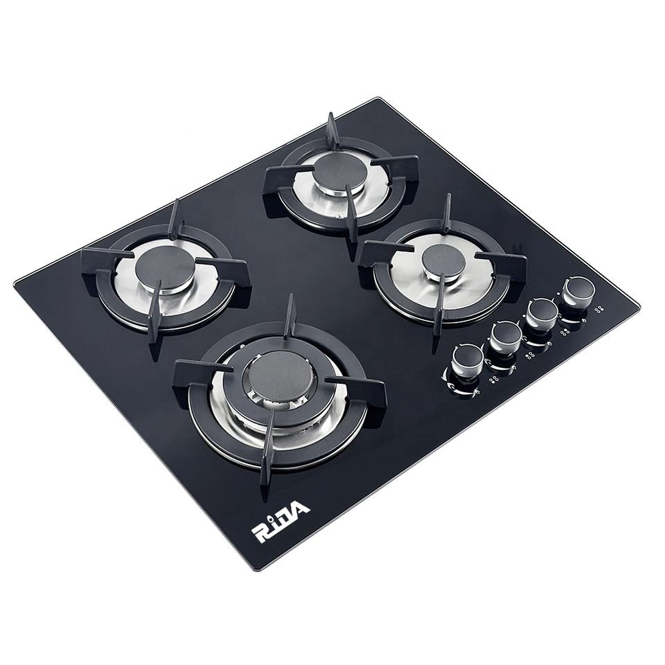 Table de cuisson à gaz 4 brûleurs en verre trempé