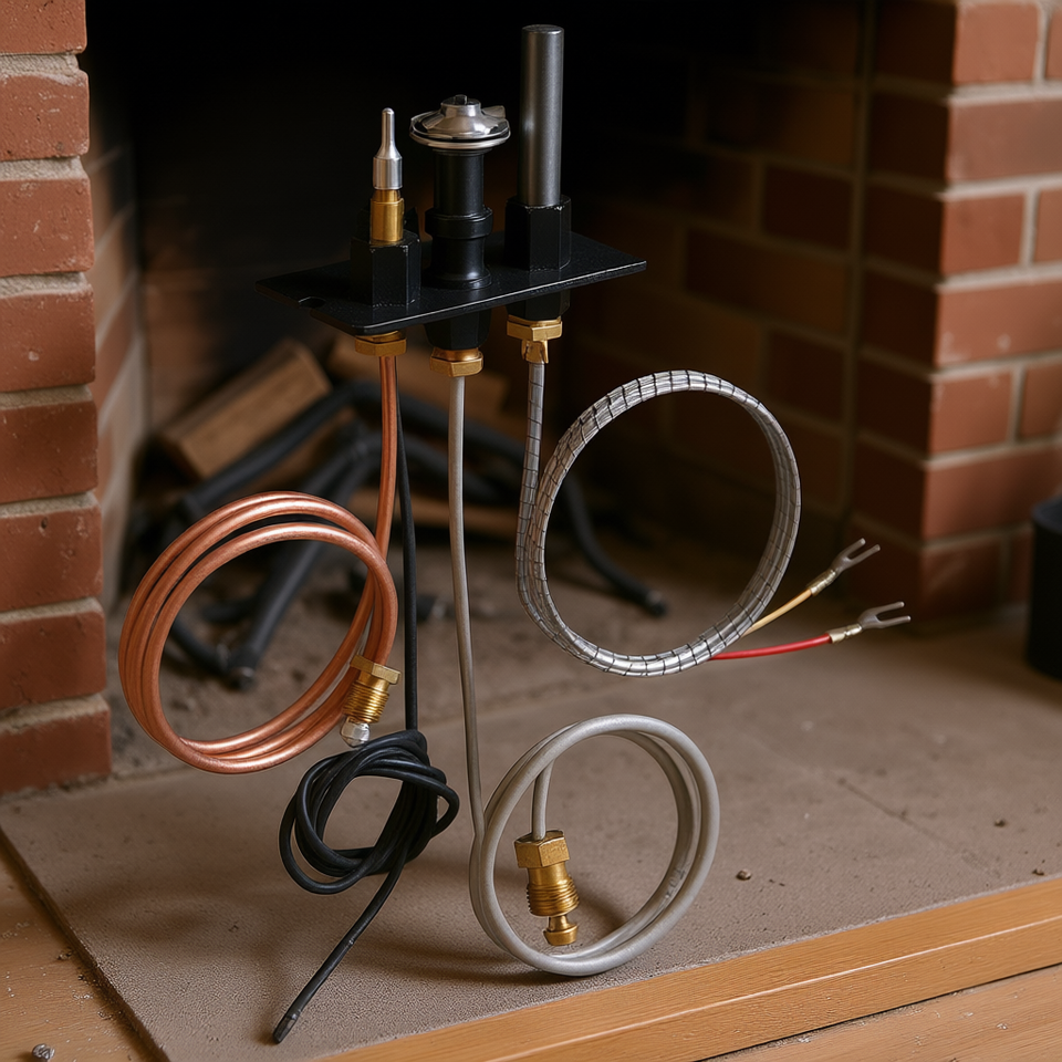 Ensemble d'allumage pour cheminées au gaz naturel/GPL, en acier inoxydable, design traditionnel, pour remplacement