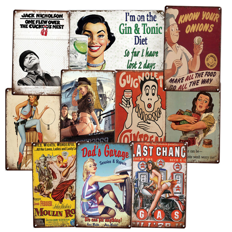 Une pièce par sac d'opp transparent, puis 50 pièces dans une boîte en carton pour étain signe décoration murale Vintage artisanat Art fer peinture étain affiche café boutique Bar Club maison décorer