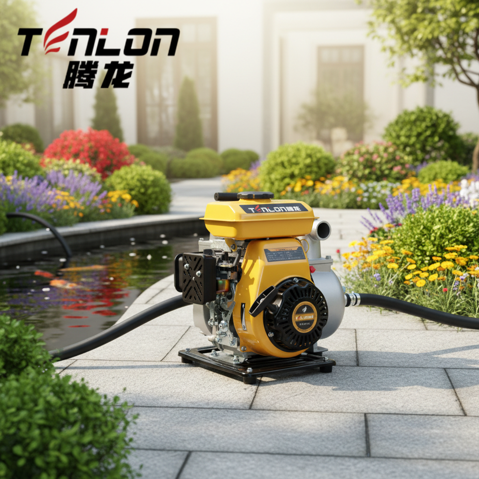 Pompe à eau carrée à essence 2,5 CV WP15, entrée 40 mm, débit 12 m³/h, hauteur de refoulement 25 m pour l'irrigation des petites exploitations agricoles en Indonésie, Thaïlande, Philippines.