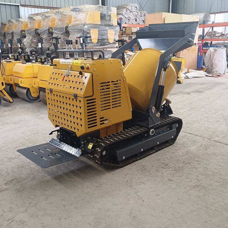 Mini bétonnière essence 300L Mélangeur de ciment à chargement automatique Mélangeur de béton à benne basculante sur chenilles