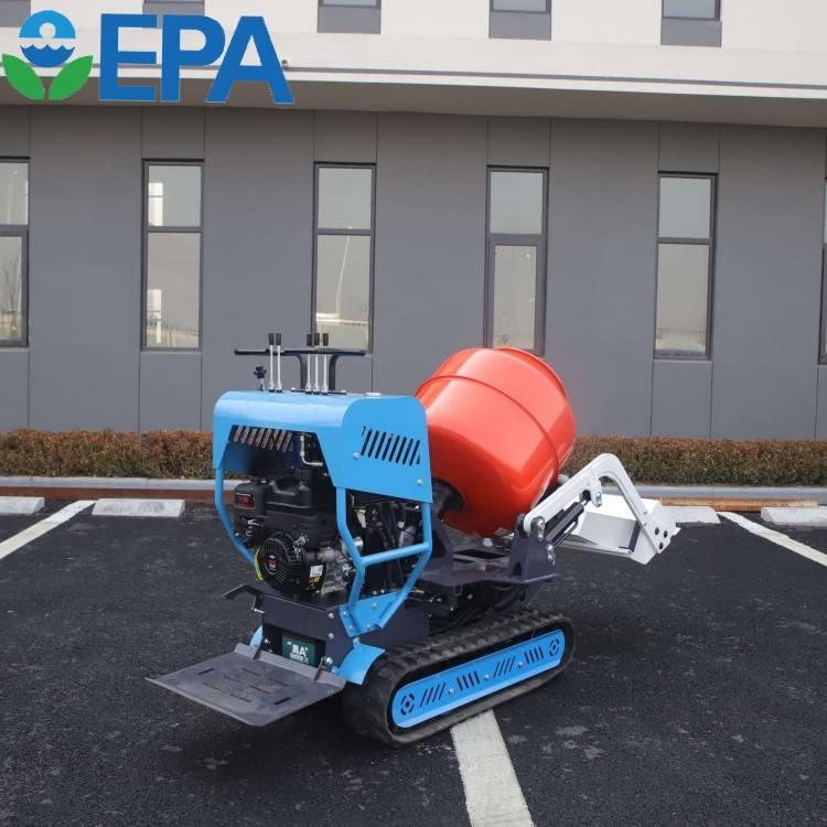 Mini bétonnière essence 300L Mélangeur de ciment à chargement automatique Mélangeur de béton à benne basculante sur chenilles