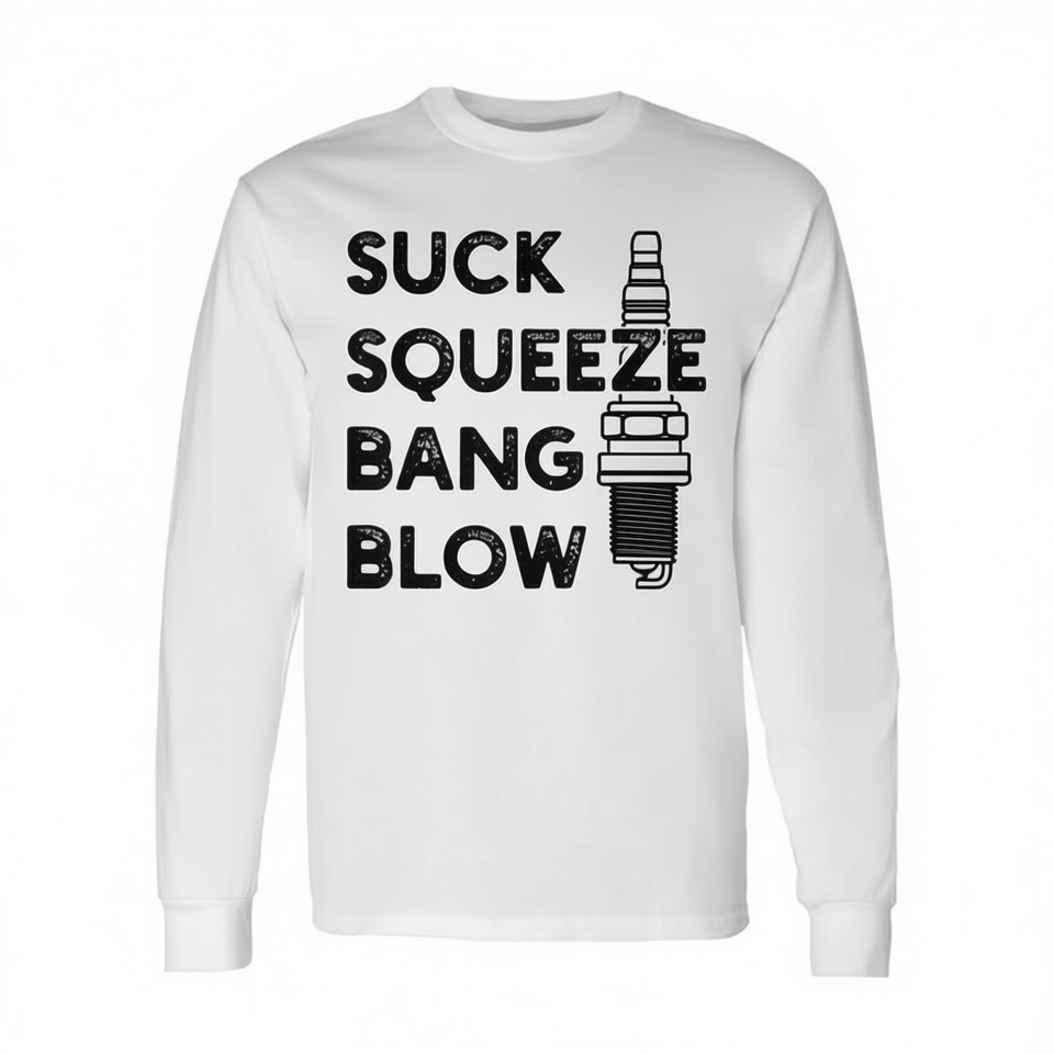 T-shirt à manches longues à thème moteur à essence quatre temps (souffler, presser, faire exploser, souffler)