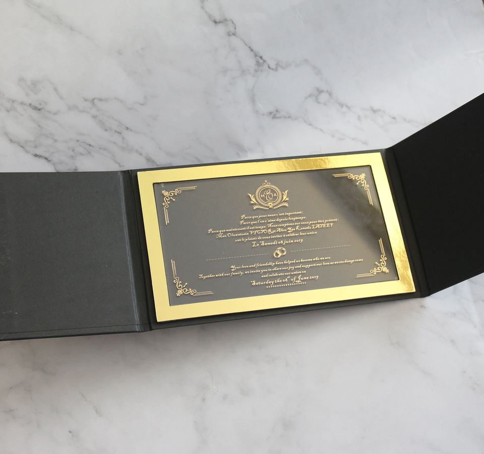 Portes pliantes à couverture rigide de luxe, Invitations transparentes en acrylique pour mariage et cartes d'invitation personnalisées à couverture rigide