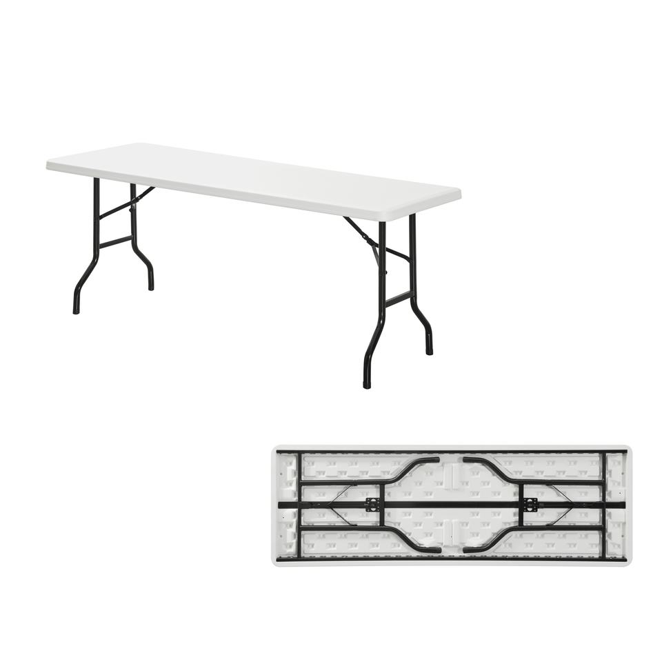 Table pliante d'extérieur avec pieds en acier, en plastique HDPE blanc, pour pique-nique, jardin, événements, camping