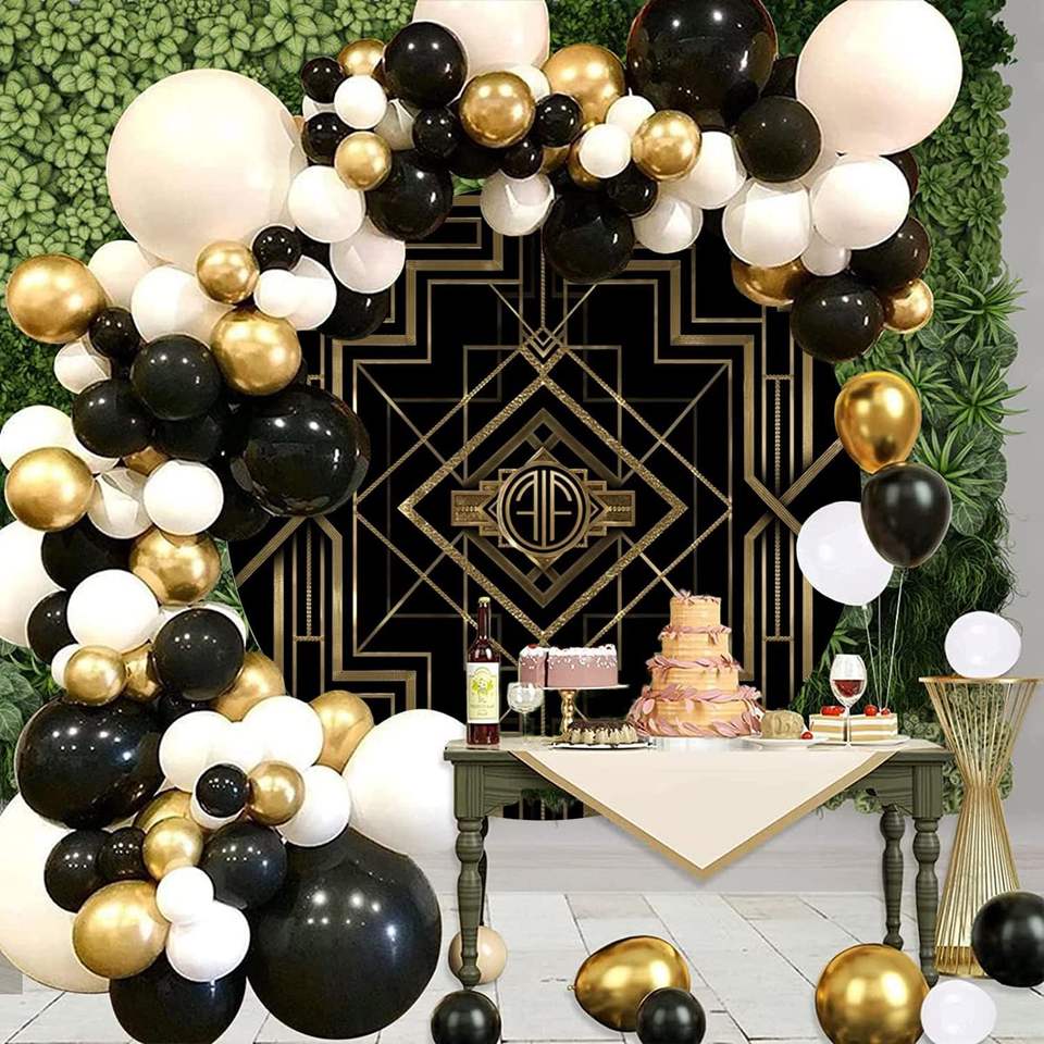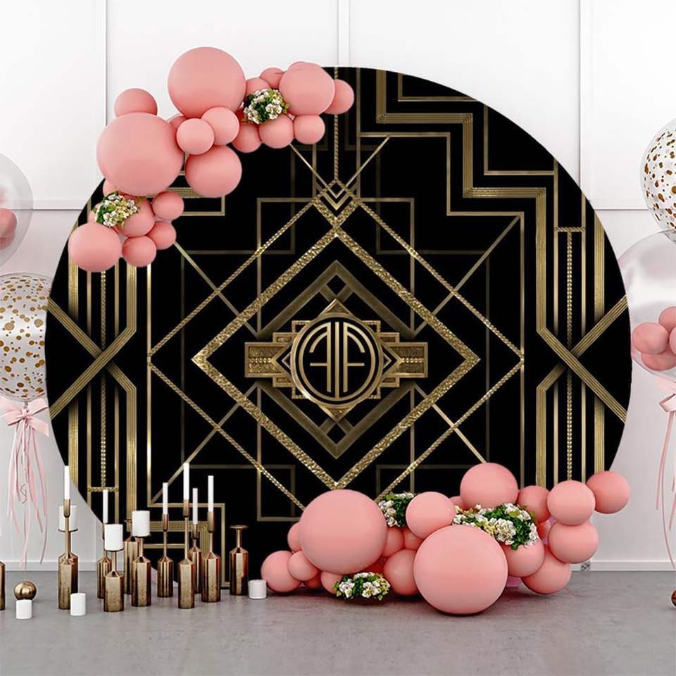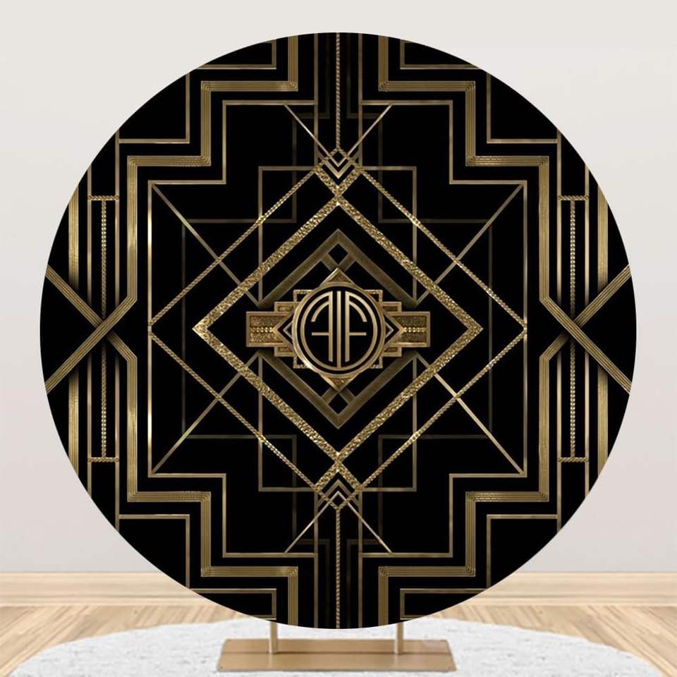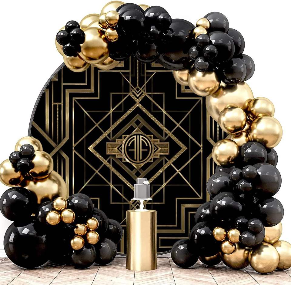 Décor de fond thème Gatsby Années Folles, vintage, or et noir, pour fête, en spandex élastique chinois, romantique et artificiel