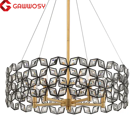 Gawwosy Lustre postmoderne en or personnalisé LED en laiton Lustre moderne en cristal noir Pendentif Island Living Room Indoor Decor