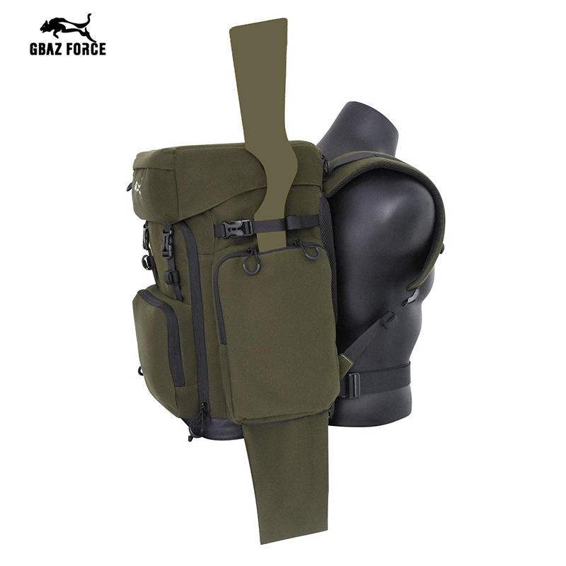 Sac à dos de chasse Gbaz Force 30L vert avec support pour fusil et poches latérales, design ergonomique pour le dos