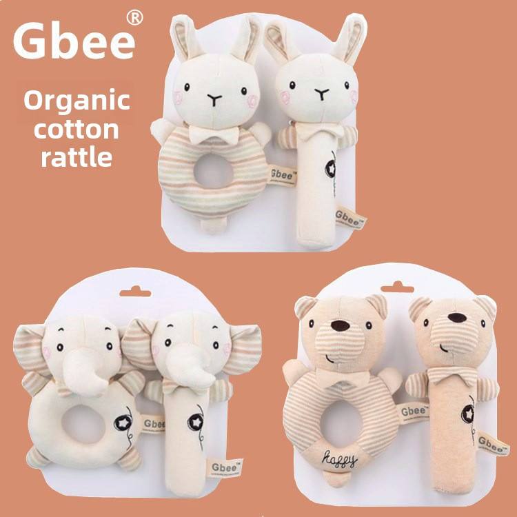 Gbee Hochet musical apaisant en coton biologique pour bébé, jouet pour nouveau-né de 0 à 1 an, clochette à main pour bébé