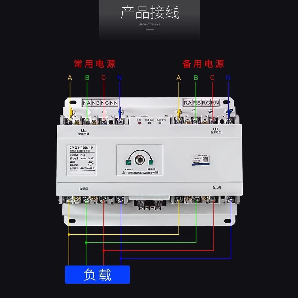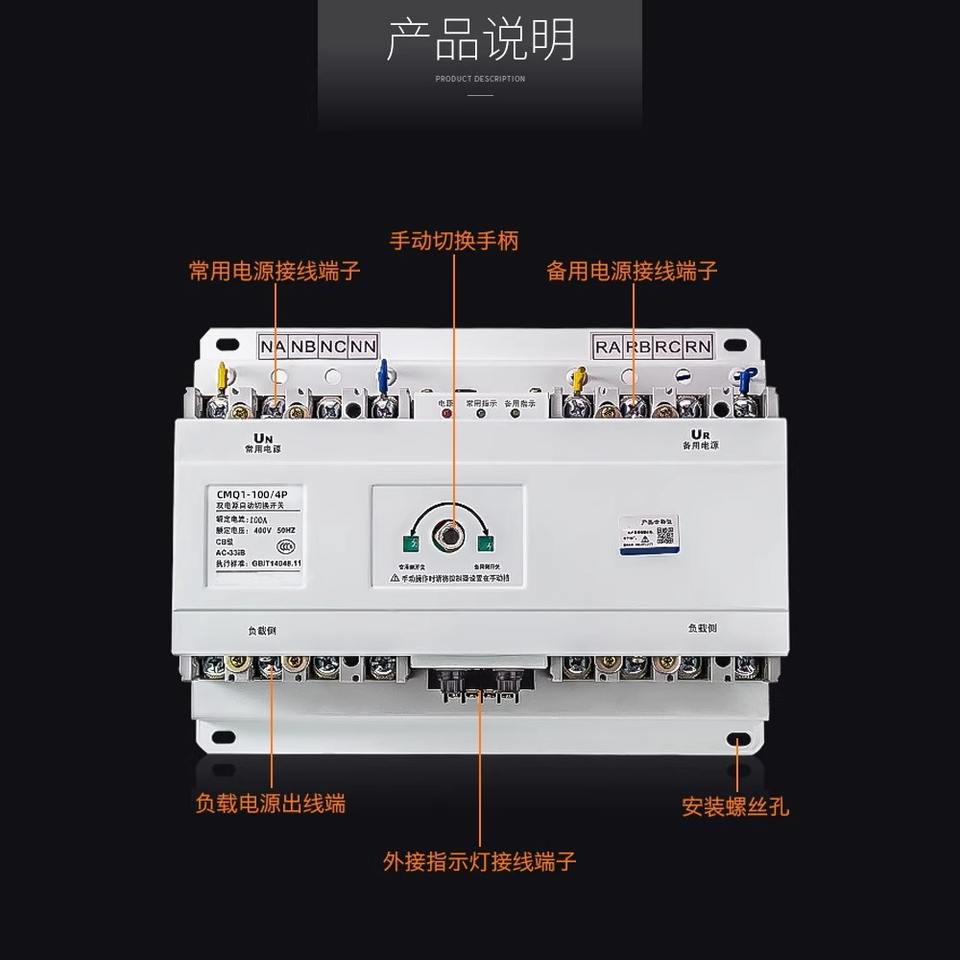 Interrupteur de transfert automatique Gcdqcn 100A 4P triphasé, type CB, double alimentation ATS