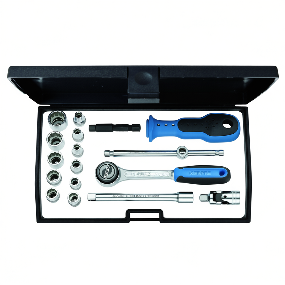 Jeu de douilles Gedore 1/4'' avec profil UD métrique, kit de 17 pièces