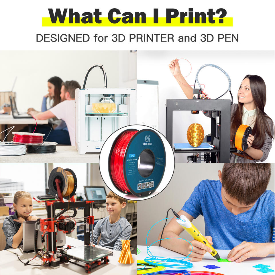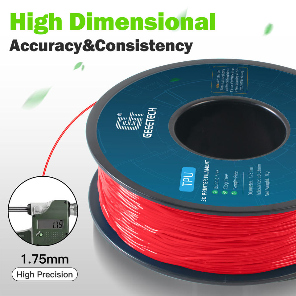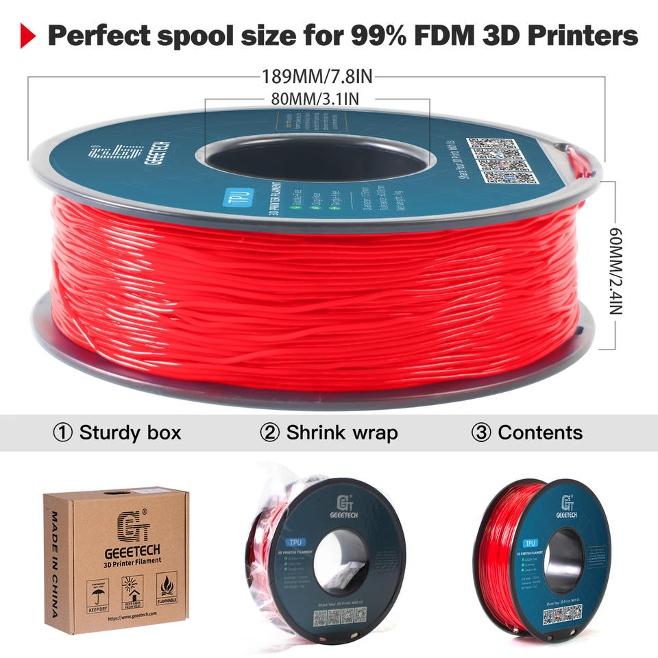 Filament 3D Geeetech 1,75 mm TPU 95A, matériau d'impression 3D flexible, longueur 3355 m, certifié MSDS/CE/RoHS/REACH