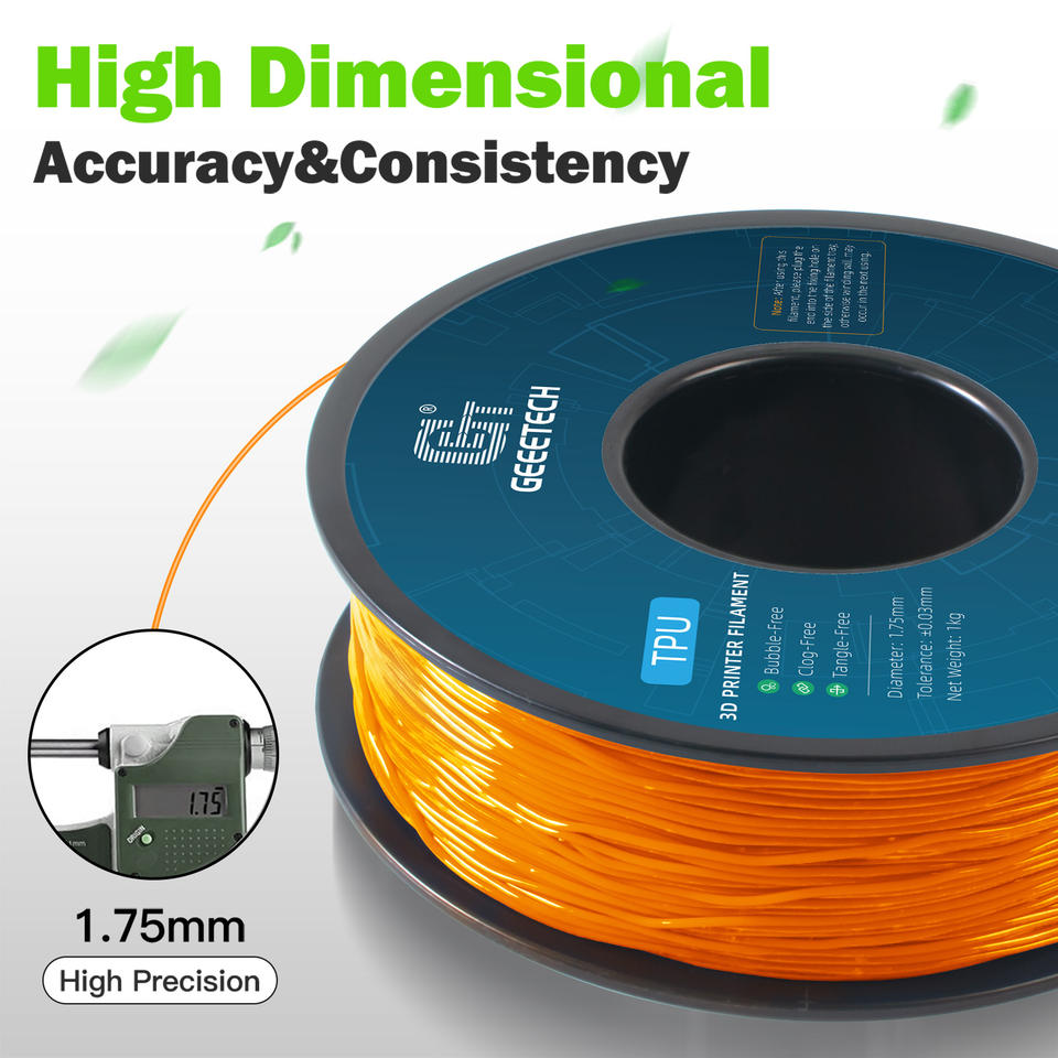 Filament d'imprimante 3D GeeTech TPU 1,75 mm flexible 95A, longueur 3355 m, température d'impression 200-230°C, température du plateau 50-60°C, vitesse d'impression 20-40 mm/s