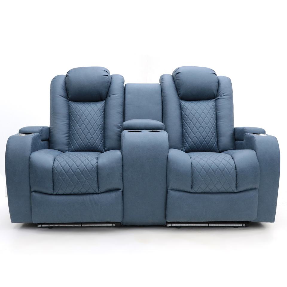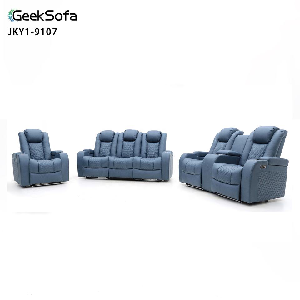 Canapé inclinable électrique en cuir Geeksofa moderne pour 6 personnes, ensemble de canapé home cinéma 3 2 1 avec console et table rabattable