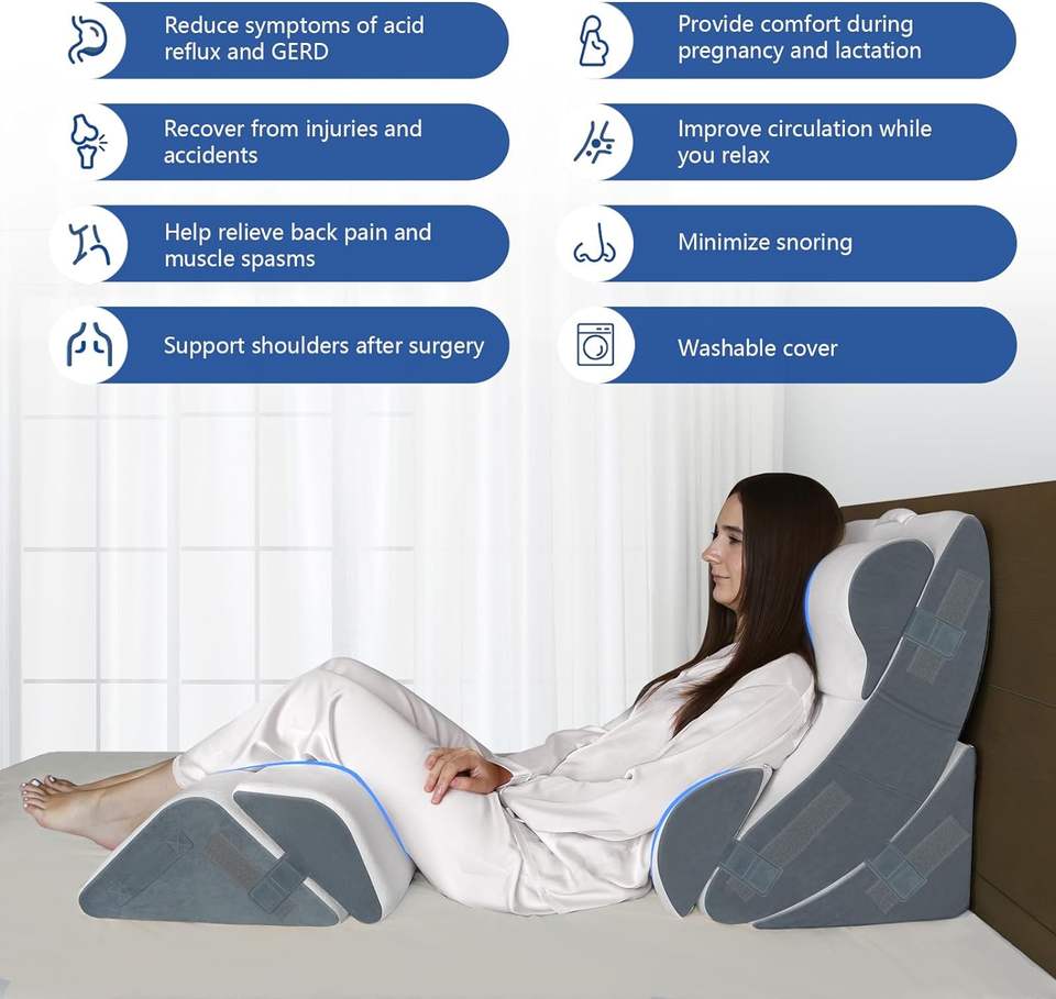 Ensemble d'oreillers en mousse à mémoire de forme post-chirurgie, soutien du dos, du cou et des jambes, reflux acide, anti-ronflement, 6 pièces, cale de lit orthopédique amovible