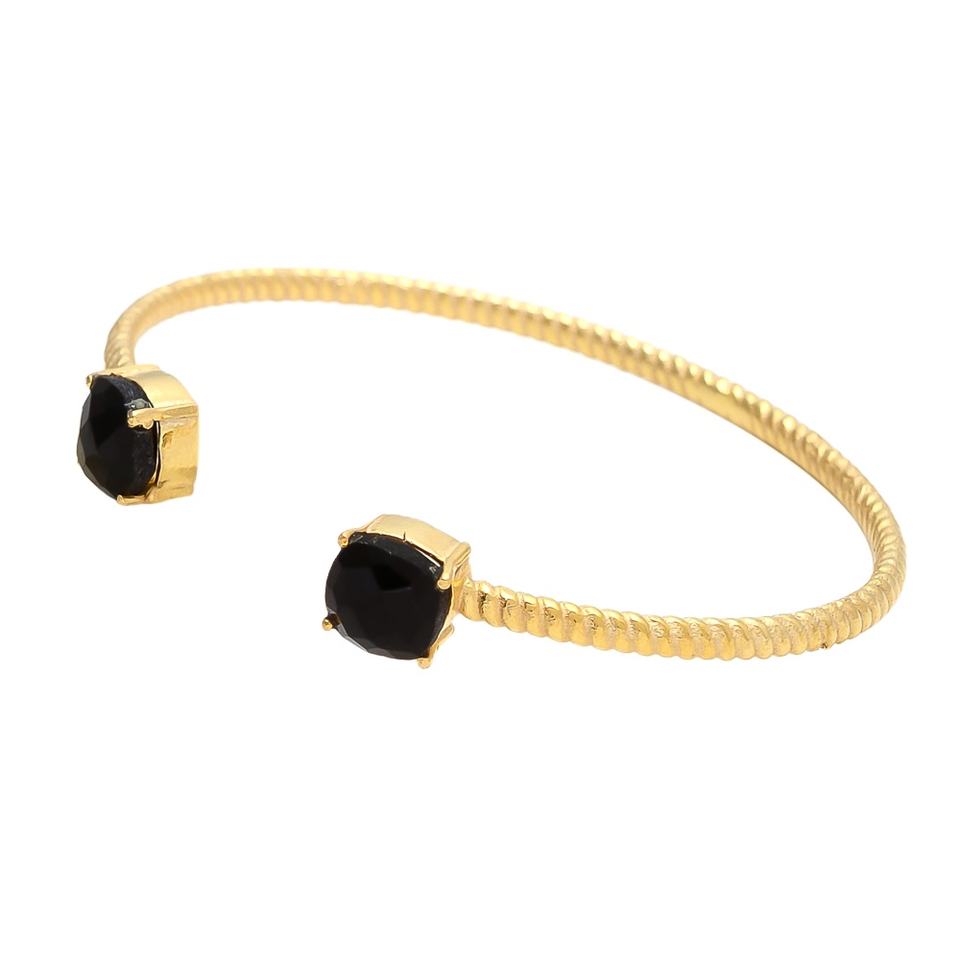 Gem Duo: a Pair of Gold Bracelet Adorned with Sparkling Gemstone of Black Onyx Gemstone Bracelet for Women and Girl