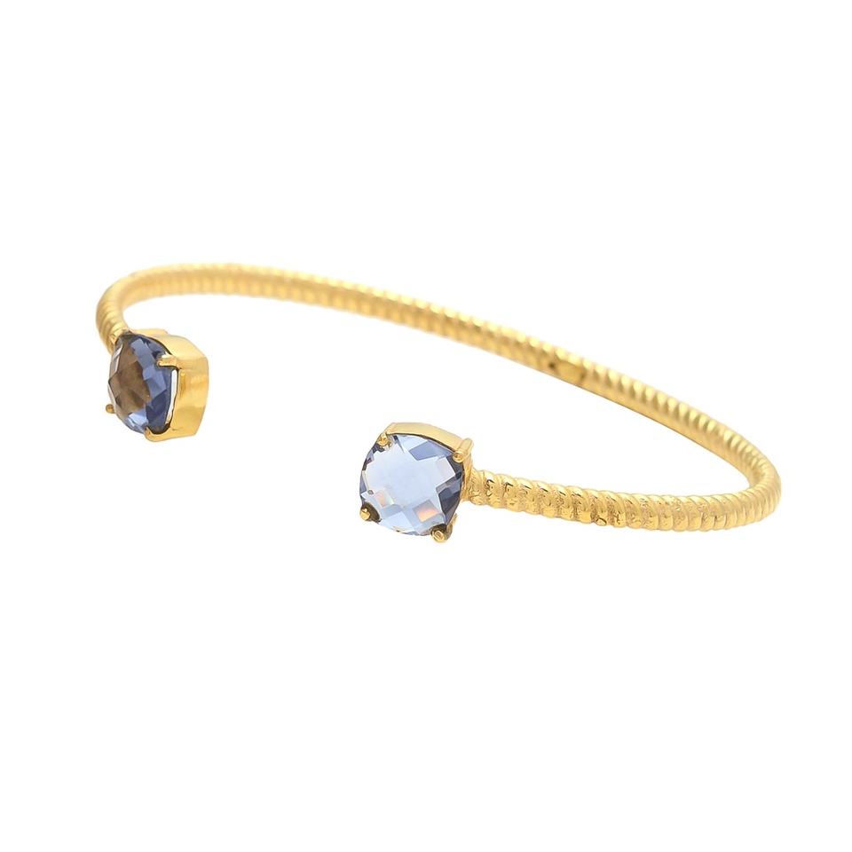 Gem Duo: a Pair of Gold Bracelet Adorned With Sparkling Gemstone of Lolite Hydro Gemstone Bracelet for Women and Girl