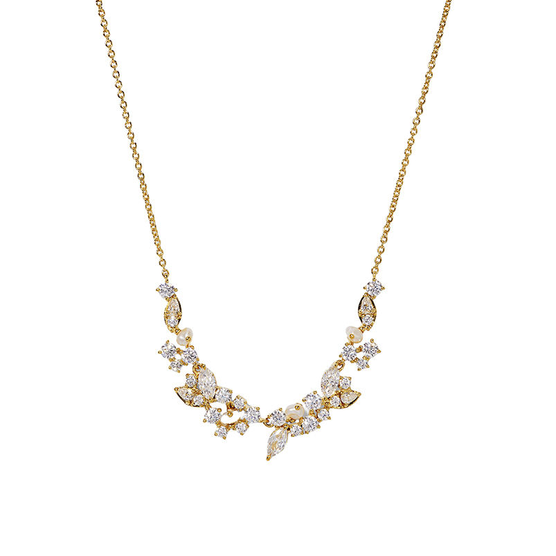 Parures de bijoux Gemnel 925 Silver Ravish Laurel Frontal, finition or, motif naturel, bijoux statement, chaîne réglable