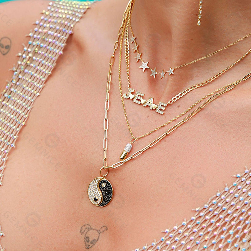 Gemnel Pendentif élégant en pierre CZ noire Yin Yang en argent 925 Bijoux glacés à breloques chinoises pour hommes et femmes