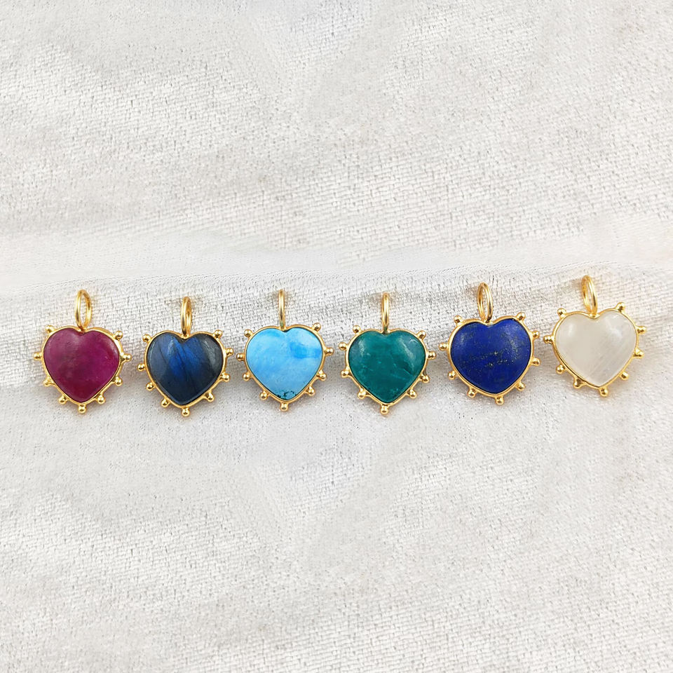 Pendentif de pierre précieuse en forme de cœur Pendentif de lunette en forme de cœur en argent sterling 925 Or Vermeil Set de lunette fantaisie Pierre de naissance Charme Fabrication de colliers