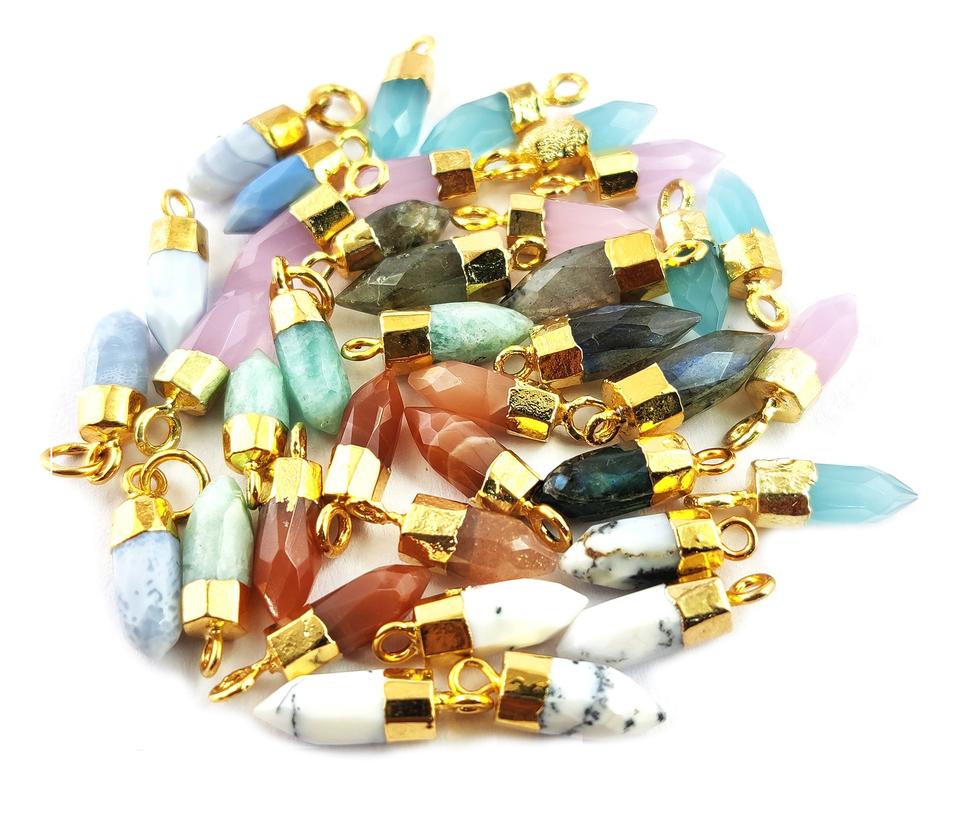 Name:Gemstone Little Spike Charms Pendant Gold Cap Tiny Point Pendants