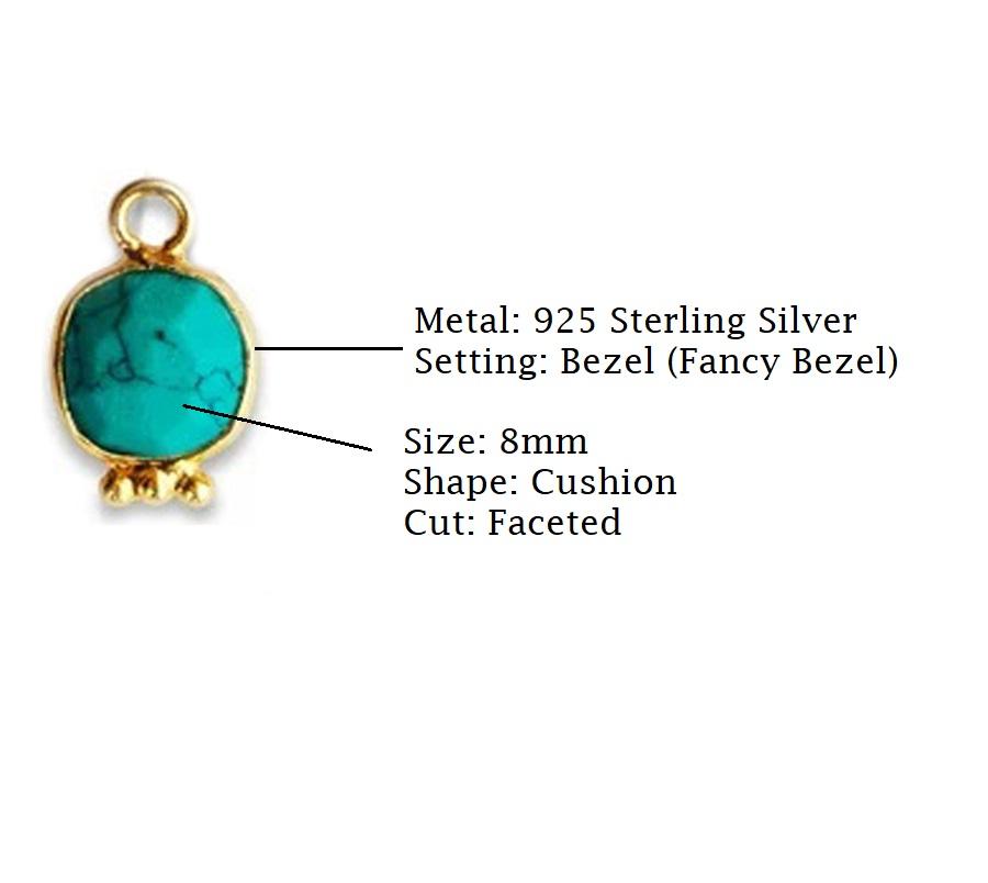8mm Gemstone Pink Ruby Bezel Set Pendentif Coussin Forme Argent Sterling 925 avec breloques et pendentifs plaqués or
