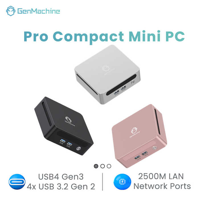Mini PC GenMachine Ryzen 7 6800H AMD 8 cœurs, LAN 2.5G, Wifi 6, BT 5.2, 2 disques durs, 4 ports USB 3.0, USB4, 3 écrans, RAM 16 Go LPDDR5, SSD
