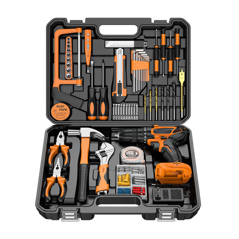 Kit d'outils de menuiserie manuels 108 pièces avec mallette rigide, personnalisable OEM, en acier à haute teneur en carbone, garantie 3 ans pour usage domestique