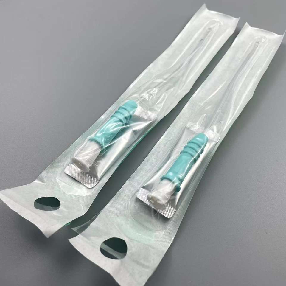 Cathéter urinaire externe jetable en PVC de type Nelaton avec dispositif de sécurité pour usage féminin et masculin, transparent