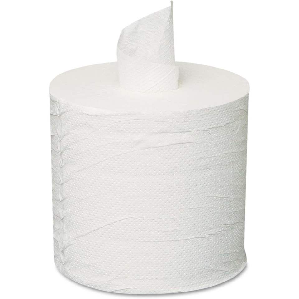 Serviettes de bain de luxe en microfibre General Supply 203 Centerpull, 2 plis, blanches, 6 rouleaux/carton, technique tissée, logo uni compressé