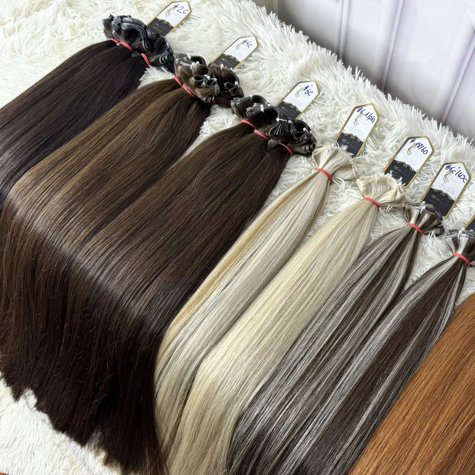 Genius Virgin Trame Extensions de cheveux humains bruts vietnamiens à donneur unique Light 613 Platinum Color Machine Double Trame