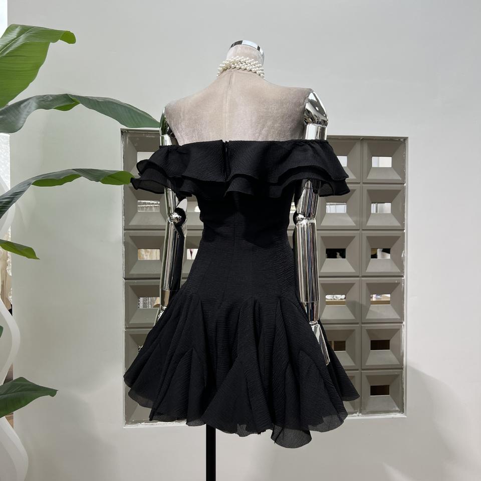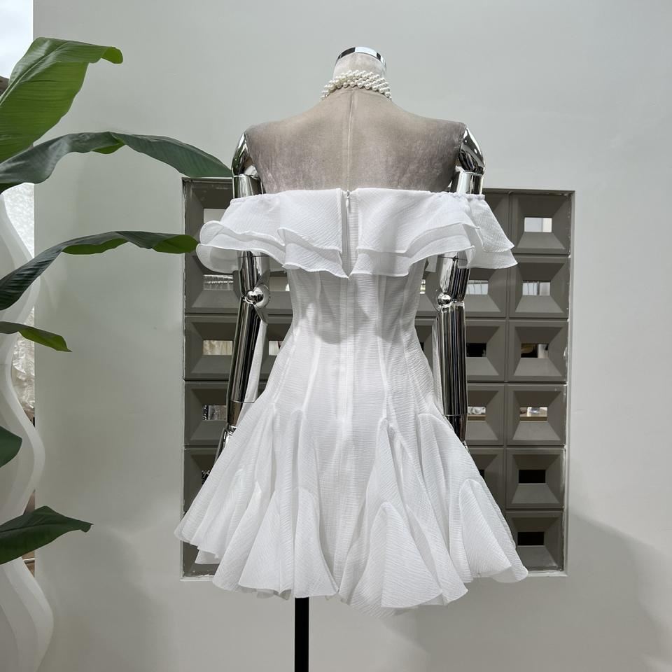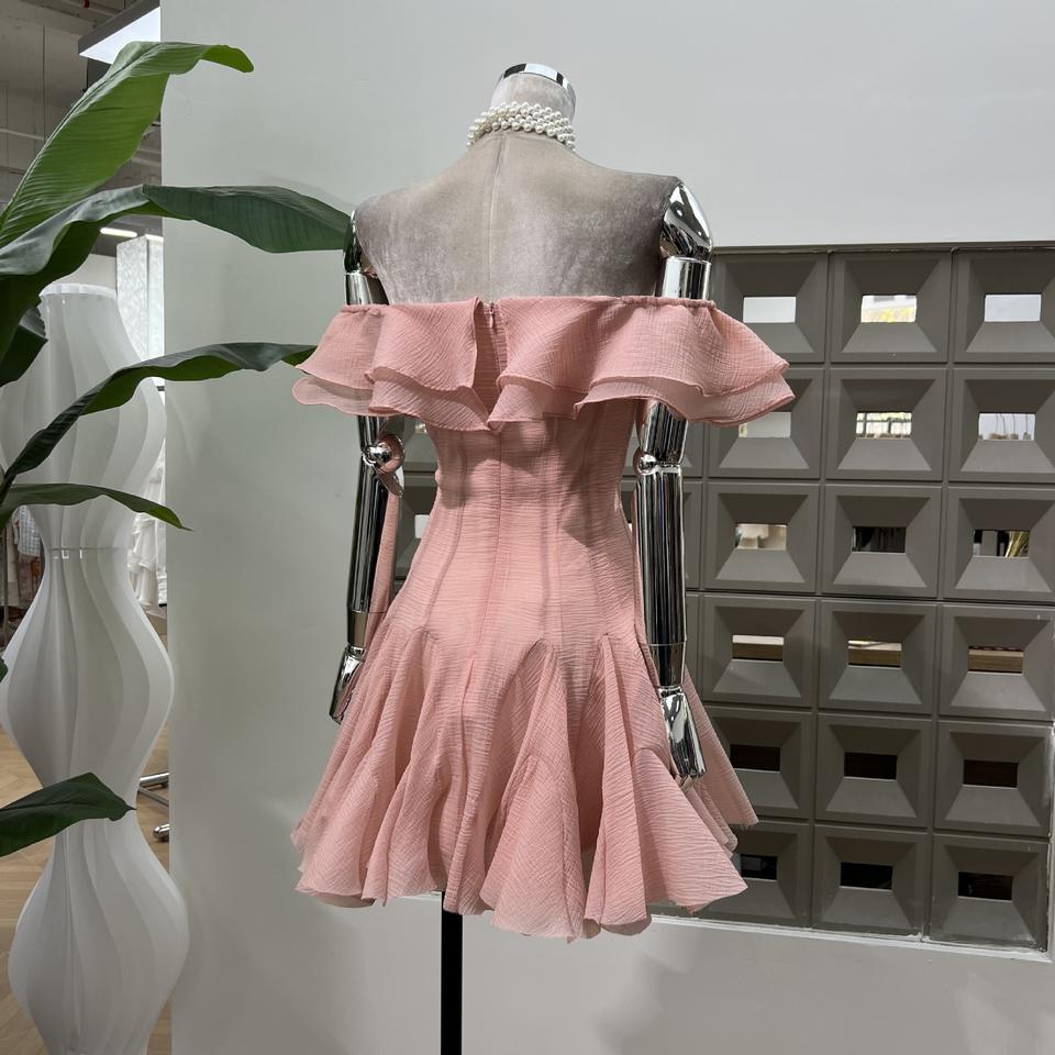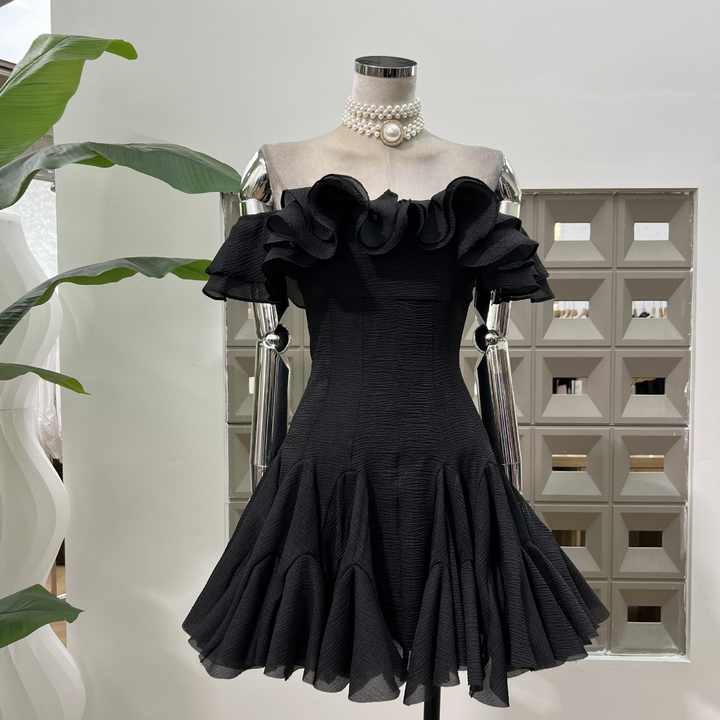 Pétales à volants doux Robe courte de fée de couleur unie à une épaule avec niche de taille Soirée à la mode Tempérament élégant