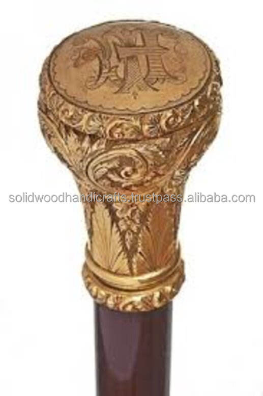 Bâton de marche pour hommes avec manche en laiton Bâton de marche en bois de style vintage Canne à manche en laiton massif Vintage Designer