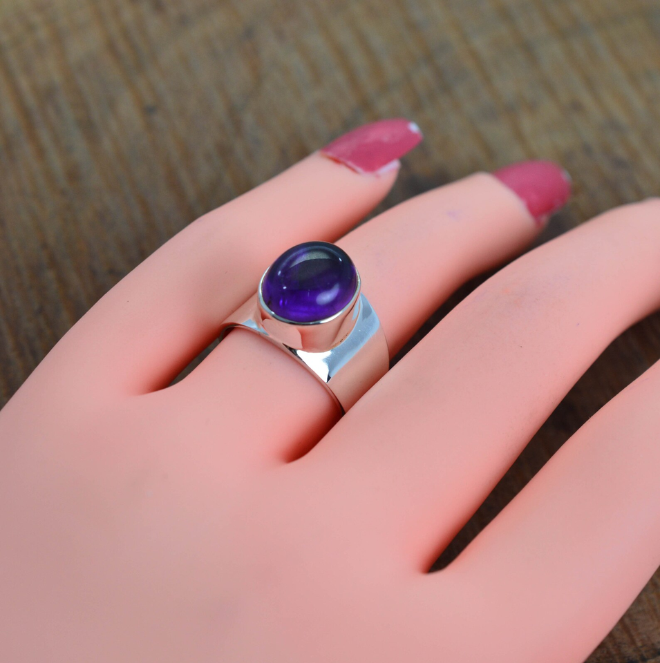 Bague en argent sterling 925 véritable améthyste Boho Hippie pour femme Grande pierre ovale pour mariage