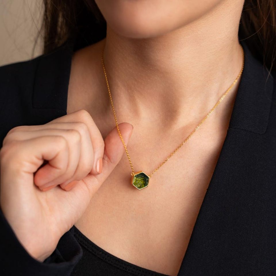 Pendentif authentique en pierre précieuse Moldavite Beau design fait à la main Bague en pierre naturelle 100% Argent sterling 925 Moldavite