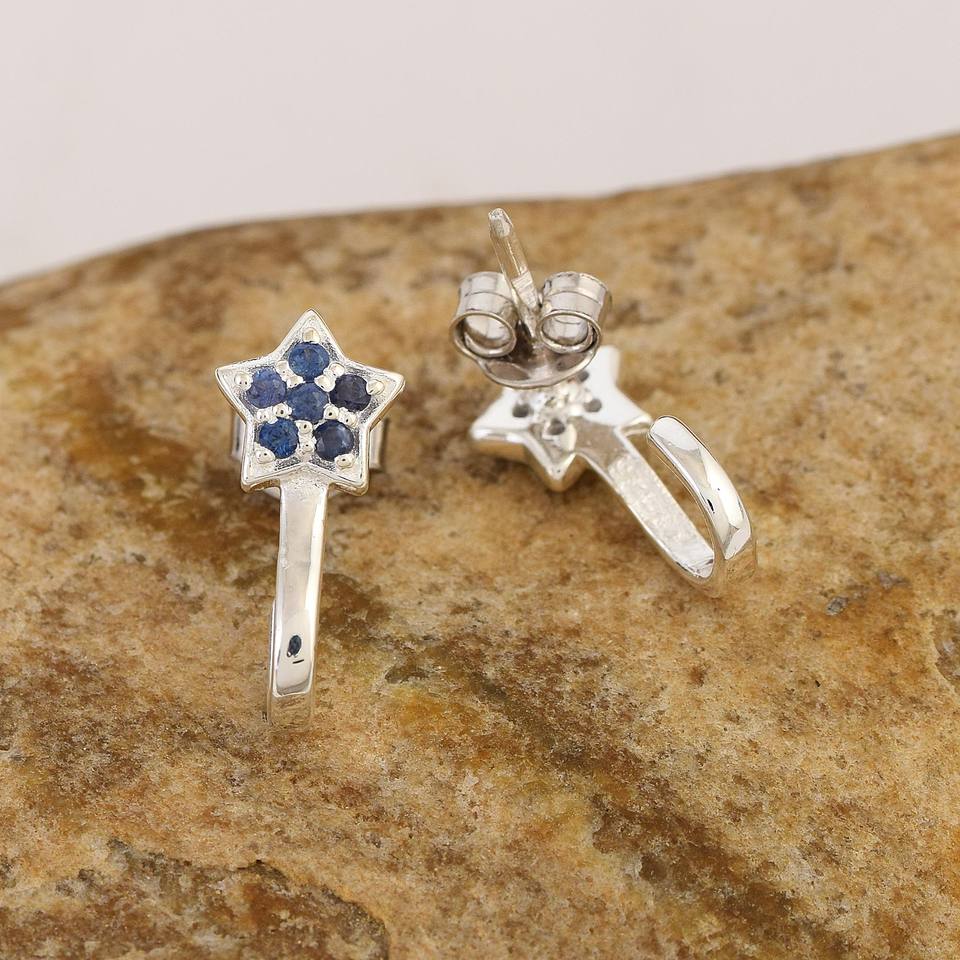 Véritable saphir bleu Minimaliste Dainty Star Shape Stud S925 Sterling Silver New Arrival Chunky Fine Dangle Elégant