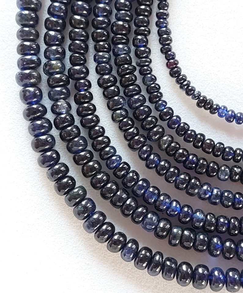 Perles rondelles lisses en saphir bleu véritable Perles lisses en saphir pour la fabrication de bijoux Pierre de naissance de septembre