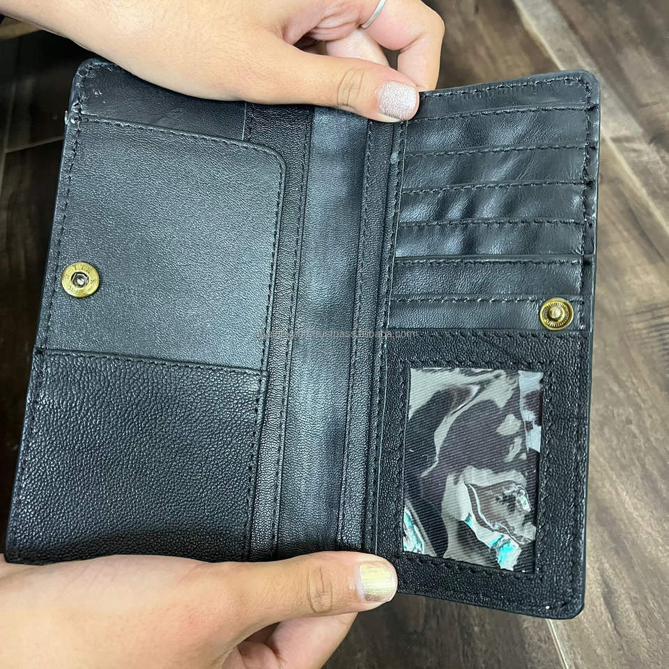 Nom du produit:Portefeuilles longs à deux volets à carreaux en cuir façonnés à la main